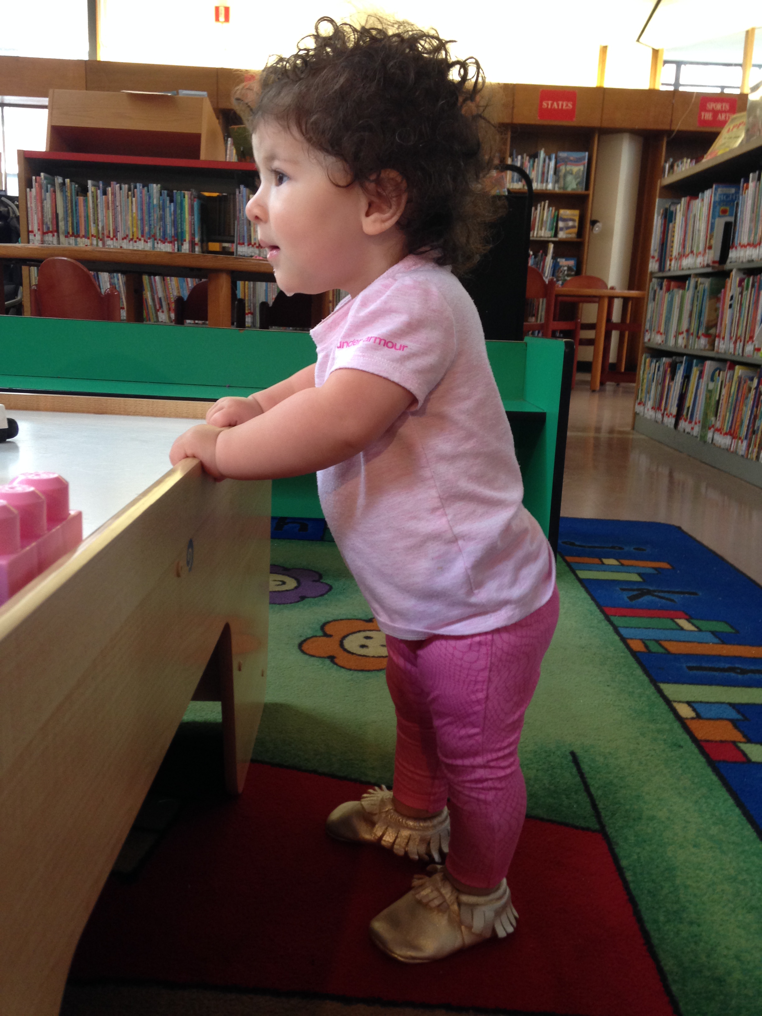 She’s starting to turn corners and confidently grasp objects but still struggles to let go of an object to walk. She’s only really comfortable holding one of our hands and letting go…strange.